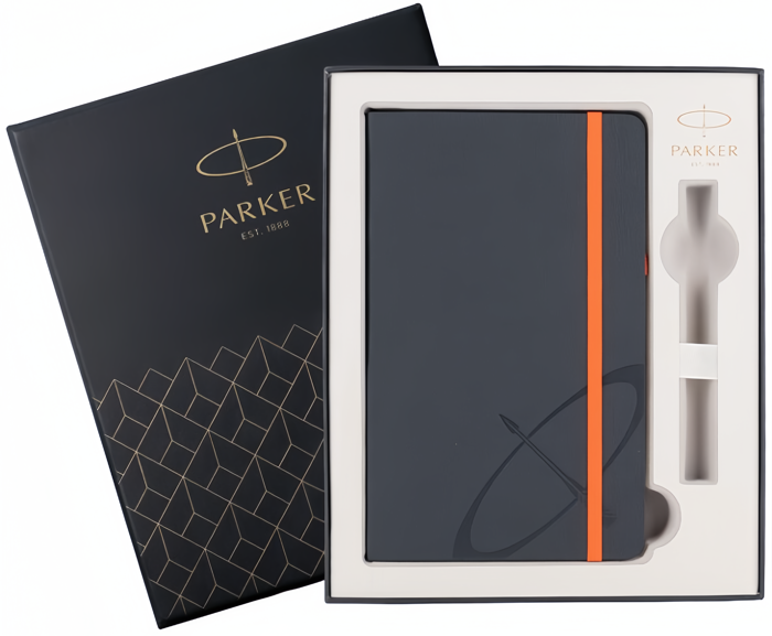 Подарочная коробка Parker с блокнотом от официального дилера Parker в Бердске. Вы можете дополнительно заказать гравировку, которая подчеркнет Вашу оригинальность и придаст памятность статусному подарку. Все ручки Паркер поставляются в фирменном футляре.